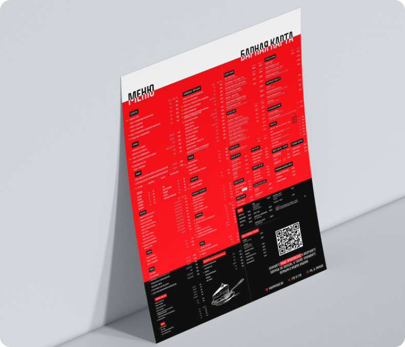 Разработка дизайна меню — это создание привлекательных и функциональных решений для ресторанов, кафе и баров. Мы учитываем не только визуальную привлекательность, но и удобство восприятия информации для гостей. Важно, чтобы меню не только выглядело стильно, но и было логично структурировано, помогая клиентам легко ориентироваться в предложениях заведения.