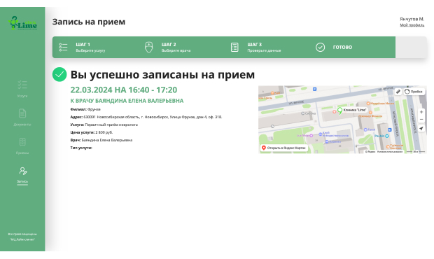 К нам обратился руководитель многопрофильного медицинского центра в Новосибирске «Lime clinic» с просьбой разработать корпоративный сайт. Основной целью было ознакомление пациентов с перечнем предоставляемых медицинских услуг, а также возможностью проведения онлайн-консультаций и записью на прием через программу «MEDIDEA».